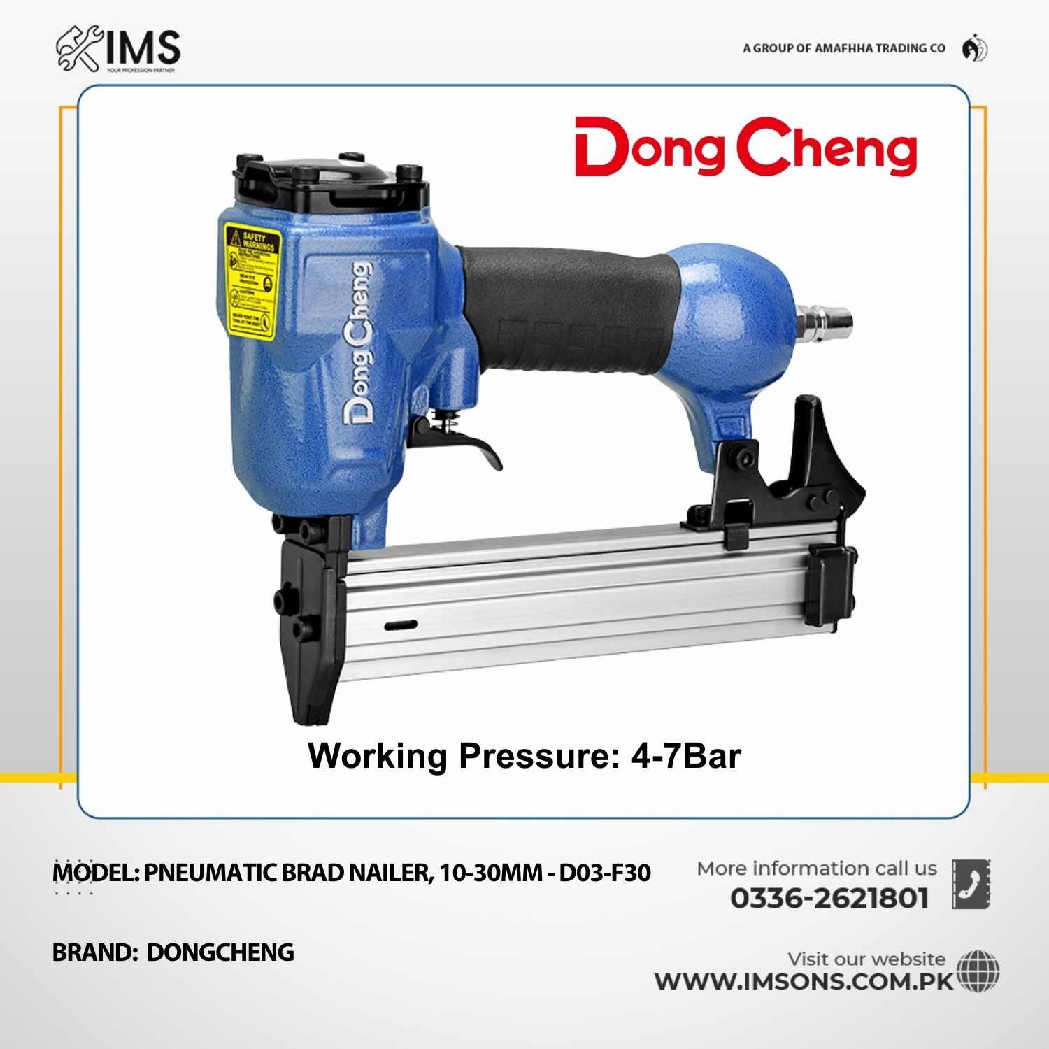 The D03-F30 Pneumatic Brad Nailer is a compact, high-performance air nail gun designed for precision fastening in woodworking and interior finishing applications. Operating at 4–7 bar pressure and supporting up to 30mm brad nails, it delivers fast, consistent, and clean nailing with minimal effort.