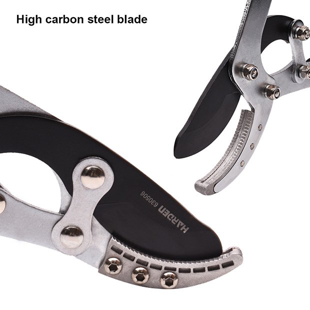 The bypass pruning blade made High carbon steel blade is treated with Teflon coating. Even after a large amount of use, the hardened blade can remain sharp for a long time, use more worry-free.