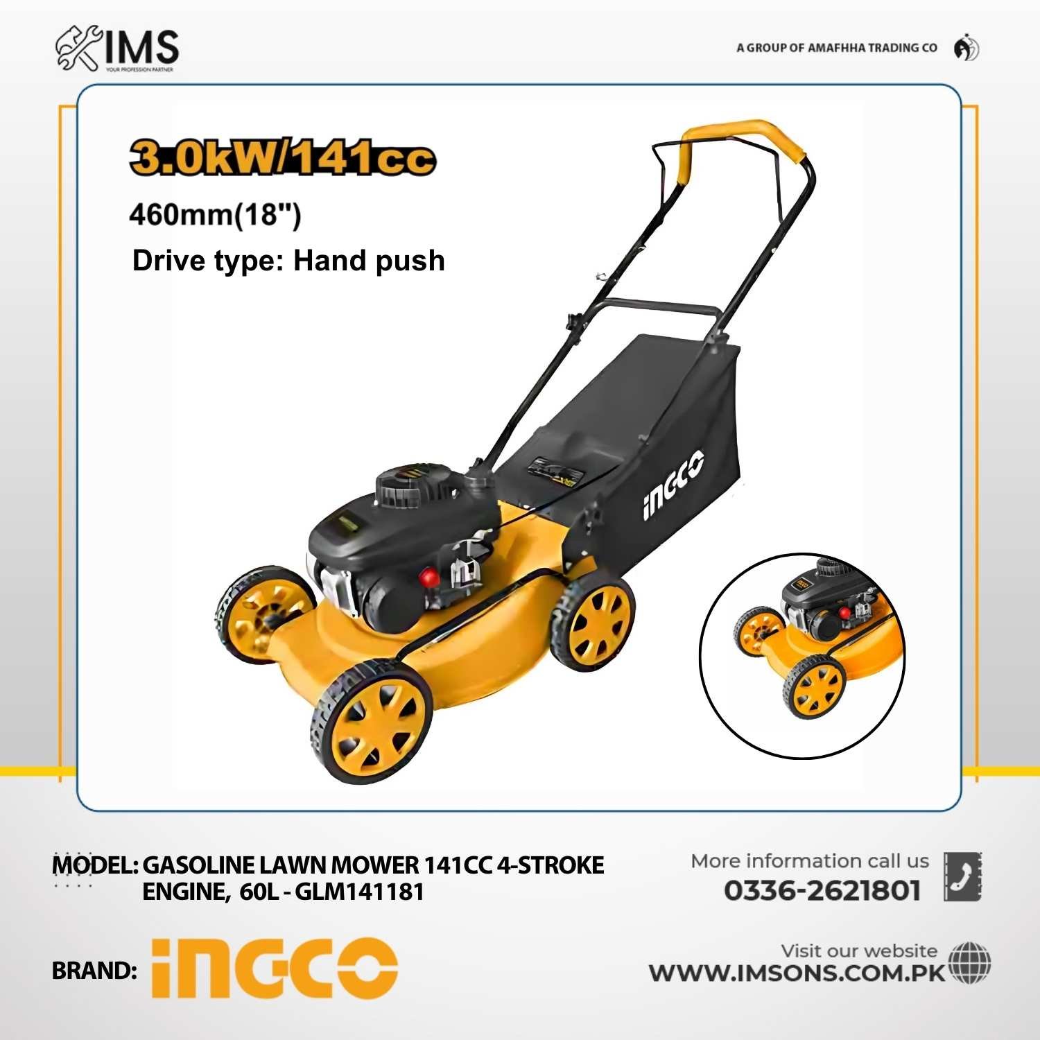 Powerful 141cc 4-stroke engine for consistent mowing performance.
