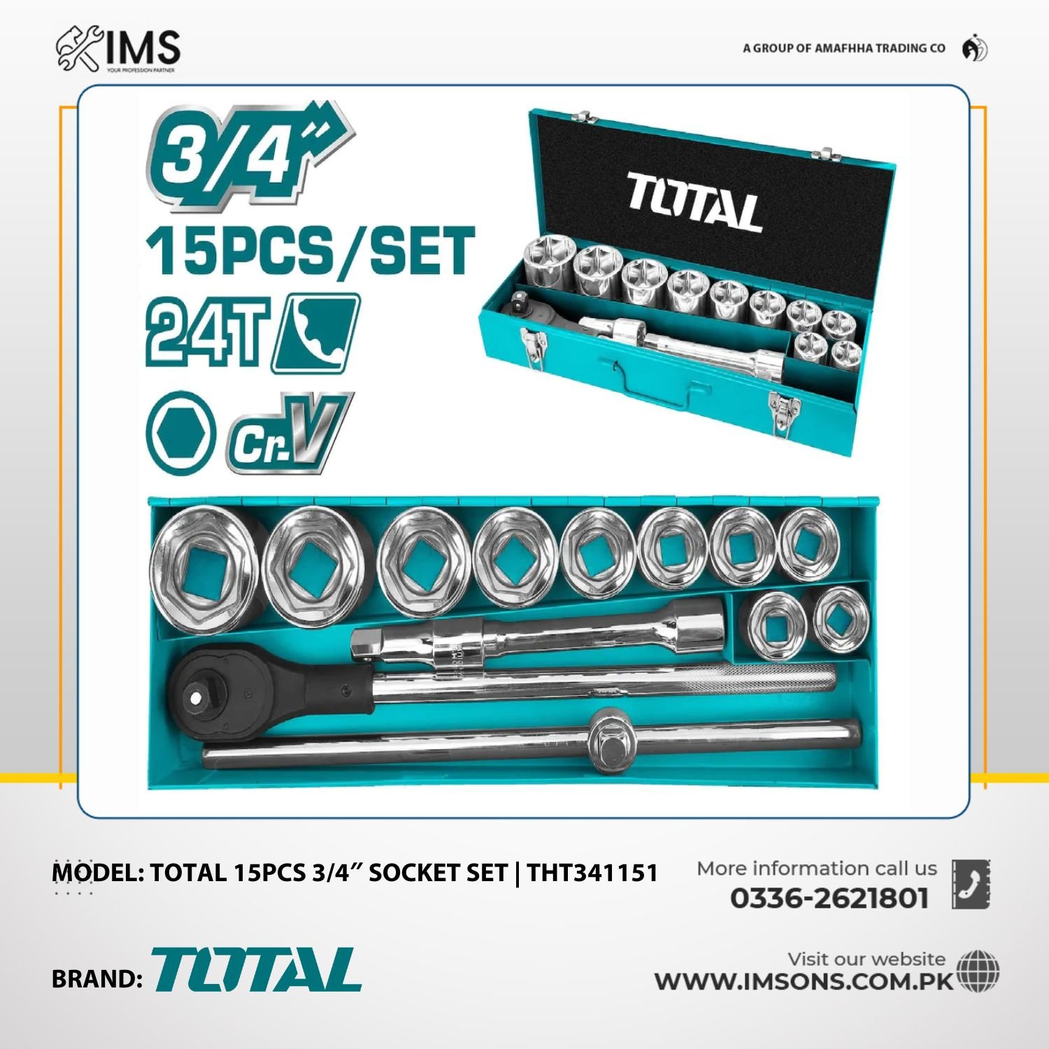 Total 15Pcs 3/4″ Socket Set | THT341151