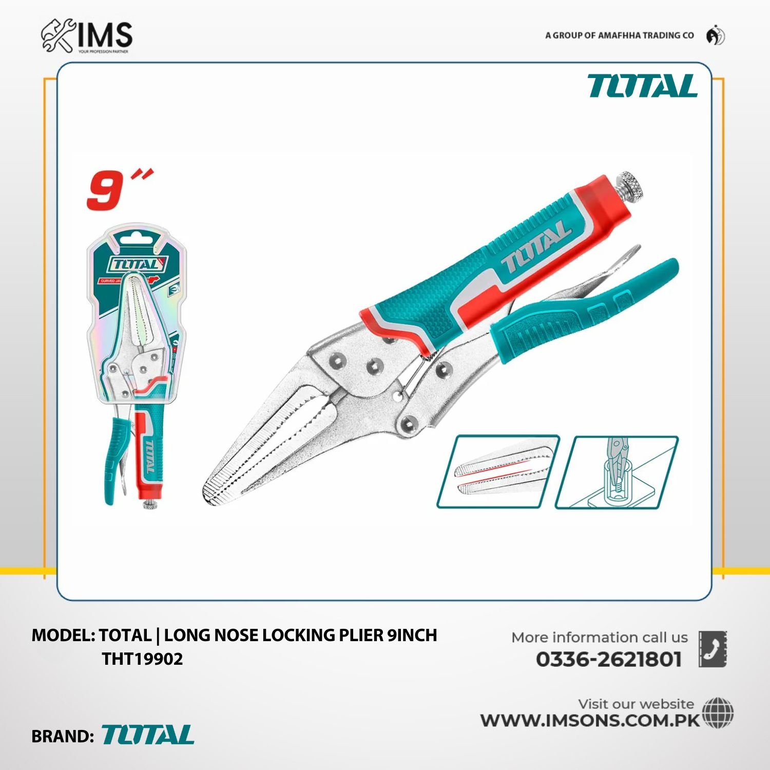 Total | Long nose locking plier 9inch THT19902